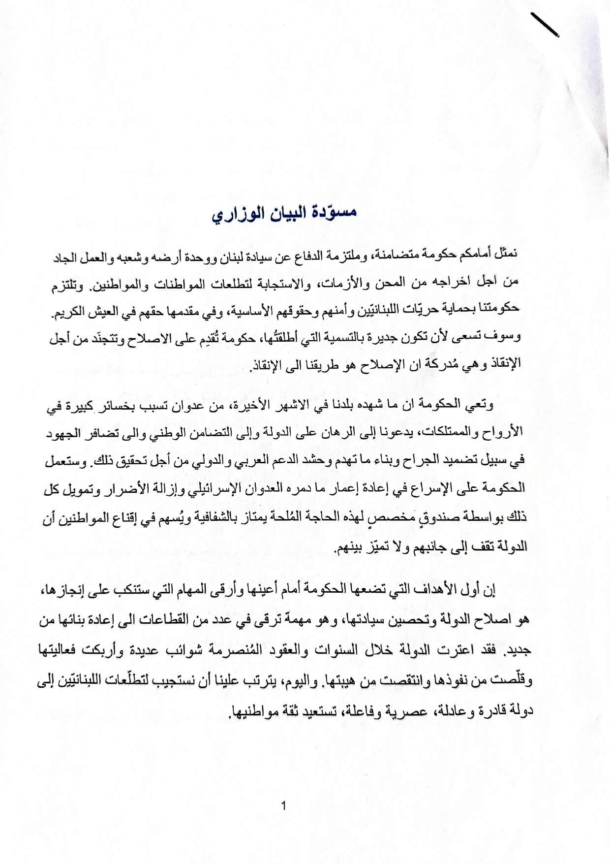 شاركها فيسبوك تويتر لينكدإن بينتيريست البريد الإلكتروني يعقد مجلس الوزراء اللبناني حالياً جلسة لمناقشة مسودة البيان الوزاري وإقراره تمهيداً لتوزيعه على النواب قبل عقد جلسة الثقة البرلمانية. أخبار الساعة أخبار رئيسية