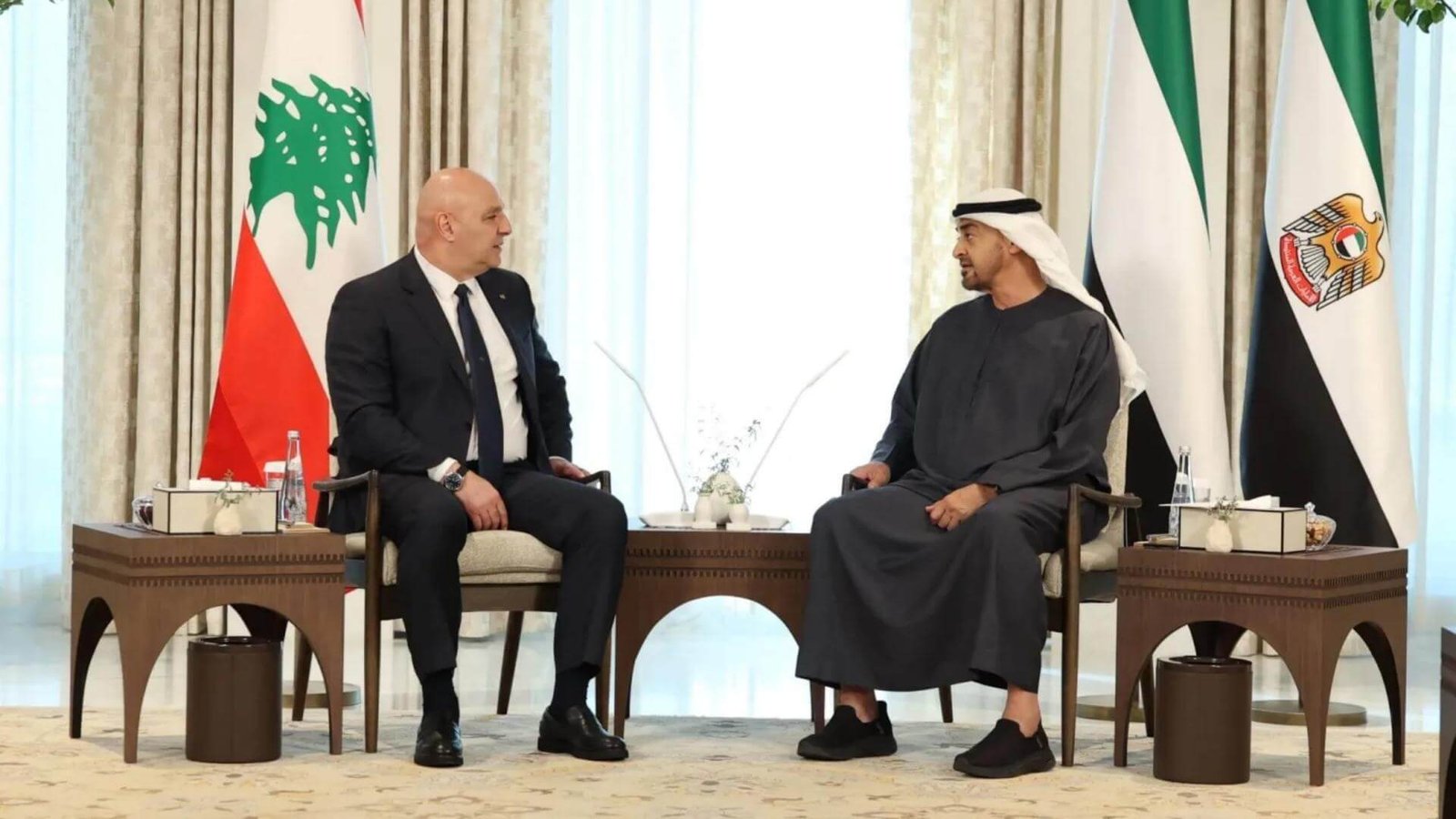 “الشيخ محمد بن زايد آل نهيان عبّر عن حرصه على العمل المشترك، وأكد دعم دولة الإمارات لأمن واستقرار وسيادة لبنان. كما أكّد الرئيس عون الحرص على ترسيخ العلاقات الثنائية، وثمّن مواقف دولة الإمارات الداعمة للبنان وشعبه.