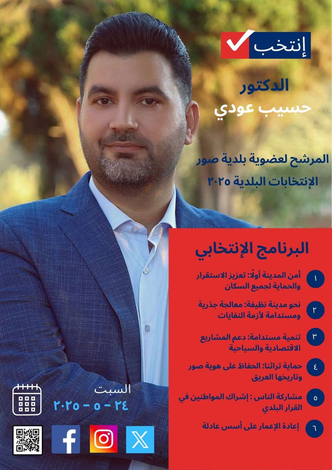 الدكتور حسيب جمال عودي يعلن ترشحه لعضوية مجلس بلدية مدينة صور