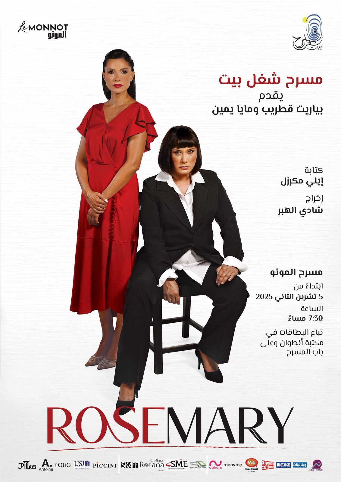 منذ بدأت كتابة النص، كنت أرى بياريت قطريب في دور ماري. حضورها وصدقها الفني جعلاها الخيار الطبيعي. وعندما عرضتُ عليها النص، شعرت به فوراً. أما مايا يمّين، فكانت اقتراحاً من المخرج، وكانت إضافة مميزة جداً. بياريت ومايا شكّلا ثنائياً مثالياً لـ روزماري، والعمل معهما كان غنياً وممتعاً.