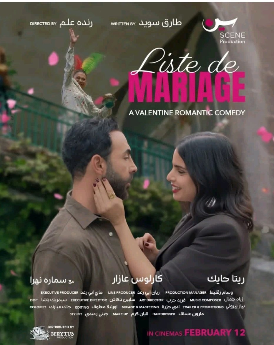 في إطار الإنتاجات السينمائية اللبنانية الجديدة، تستعدّ صالات العرض لاستقبال فيلم «Liste De Mariage» ابتداءً من 12 شباط/فبراير 2026، في عمل يجمع بين البعدين الاجتماعي والدرامي، ويطرح رؤية معاصرة لواقع العلاقات الإنسانية.