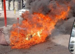 أشعل أحد المواطنين دراجته النارية في محيط سبينس – صيدا، اعتراضاً على محاولة حجزها.