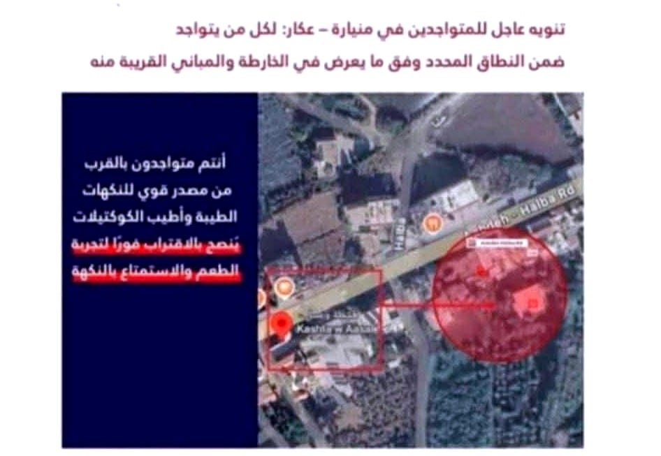 وفي التفاصيل، جاء الإعلان بصيغة تحاكي بشكل مباشر الإنذارات التي يطلقها المتحدث باسم الجيش الإسرائيلي أفيخاي أدرعي، مرفقاً بخريطة وتحديد نطاق جغرافي وعبارات توحي بالخطر، قبل أن يتبيّن لاحقاً أنه مجرّد ترويج تجاري لمحل يقدّم الحلويات والمشروبات. هذا الأسلوب، الذي وُصف بالمستفز وغير الأخلاقي، أثار حالة من الذعر لدى المواطنين، خصوصاً في ظل التوتر الأمني القائم والخشية من أي تصعيد مفاجئ.