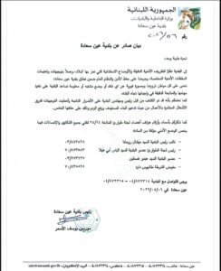 وقالت البلدية في بيانها: “نظراً للظروف الأمنية الدقيقة والأوضاع الاستثنائية التي تمر بها البلاد، وعملاً بتوجيهات السلطات الأمنية المختصة، وحرصاً على حفظ الأمن والنظام العام ضمن نطاق بلدية عين سعادة، نتمنى على كل مواطن تزويدنا بصورة فورية بأي شك أو وضع مشتبه أو معلومة تساعد البلدية على تنفيذ مهامها والمتابعة الدقيقة في واجباتها تجاه البلدة”.