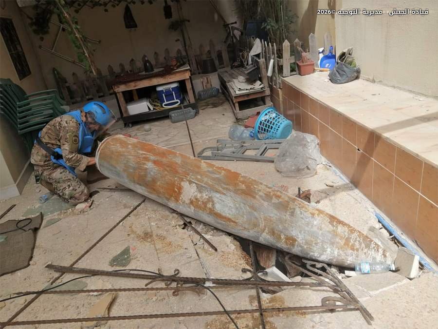 صدر عن قيادة الجيش – مديرية التوجيه البيان الآتي:”عملت وحدة مختصة من الجيش على تفكيك خمس قنابل طيران غير منفجرة من مخلفات العدوان الإسرائيلي في منطقة حارة حريك – الضاحية الجنوبية، ونقلت ثلاث منها لإجراء اللازم بشأنها، ويجري العمل على نقل القنبلتين الباقيتين. تدعو قيادة الجيش المواطنين إلى عدم الاقتراب من الأماكن المتضرّرة، وإبلاغ أقرب مركز عسكري عن أي جسم مشبوه”.
